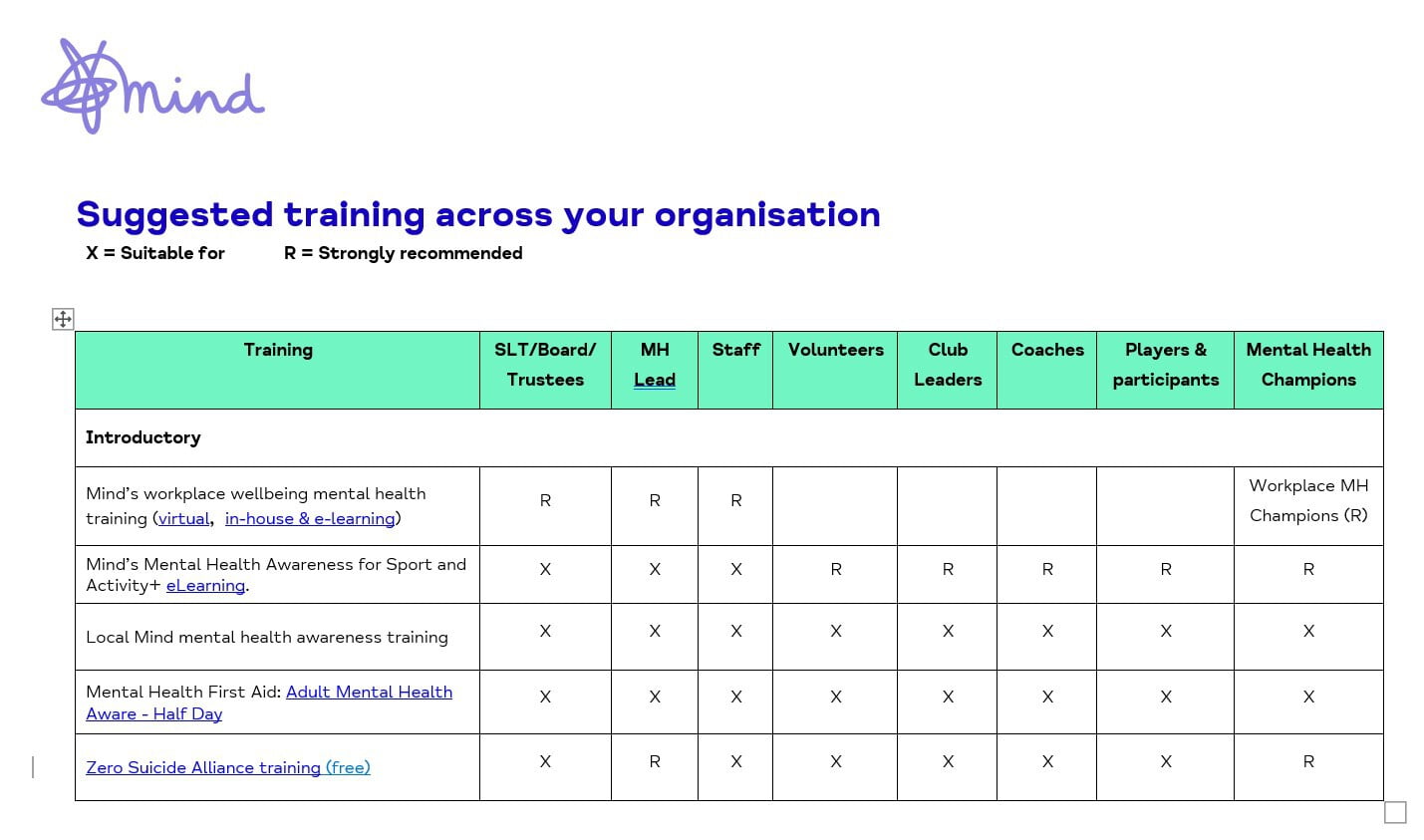 When embedding mental health support across your organisation, it is important to think about what training format works best for different groups of people.
