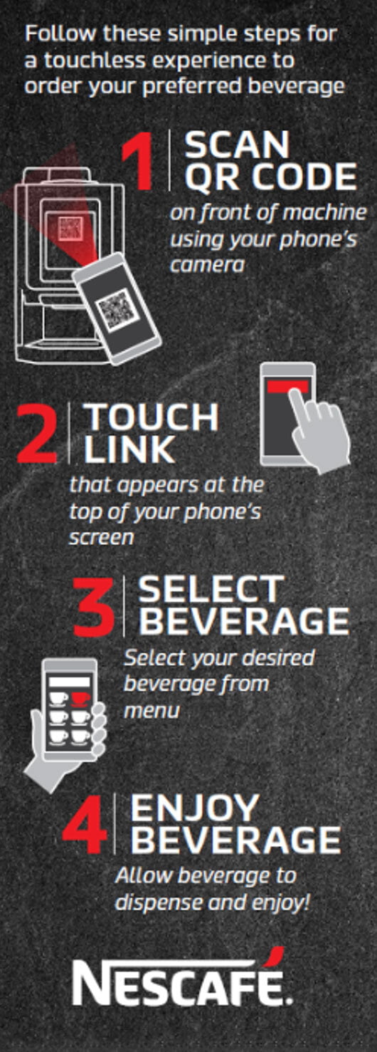 With the NESCAFÉ® Bean-To-Cup Coffee Machine, customers can feel comfortable knowing that all the products are housed within the machine and it requires minimal contact to dispense their favorite coffee.