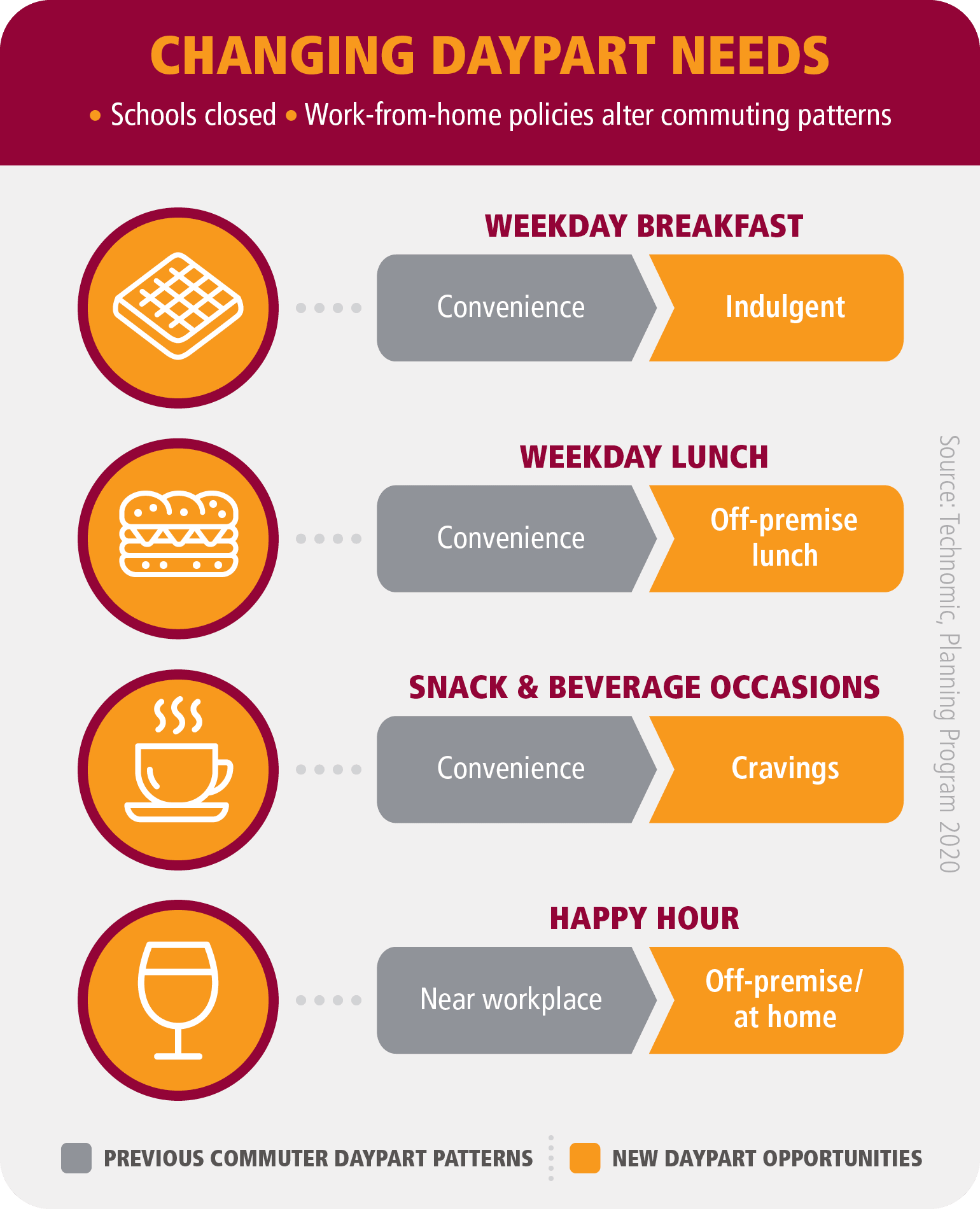 In addition, ordering behavior is different, according to RMS. What guests order, for whom, and how have all changed. Group or family orders, picked up curbside, have replaced a family night out, for example. And while traffic might be down, check size is growing to meet the new occasion. In fact, checks below $10 were on the decline, while checks totaling $15 and more have grown.3