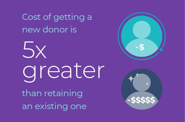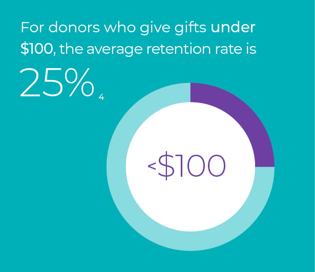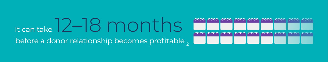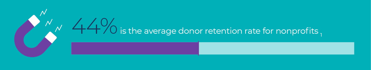 The formula for tracking your organization’s donor retention is pretty simple. To calculate your donor retention rate, you need to know how many people donated to your organization each year and how many repeat donors you had. Divide the number of repeat donors from year two by the number of total donors the year before. This gives you the percentage of people who returned to give.